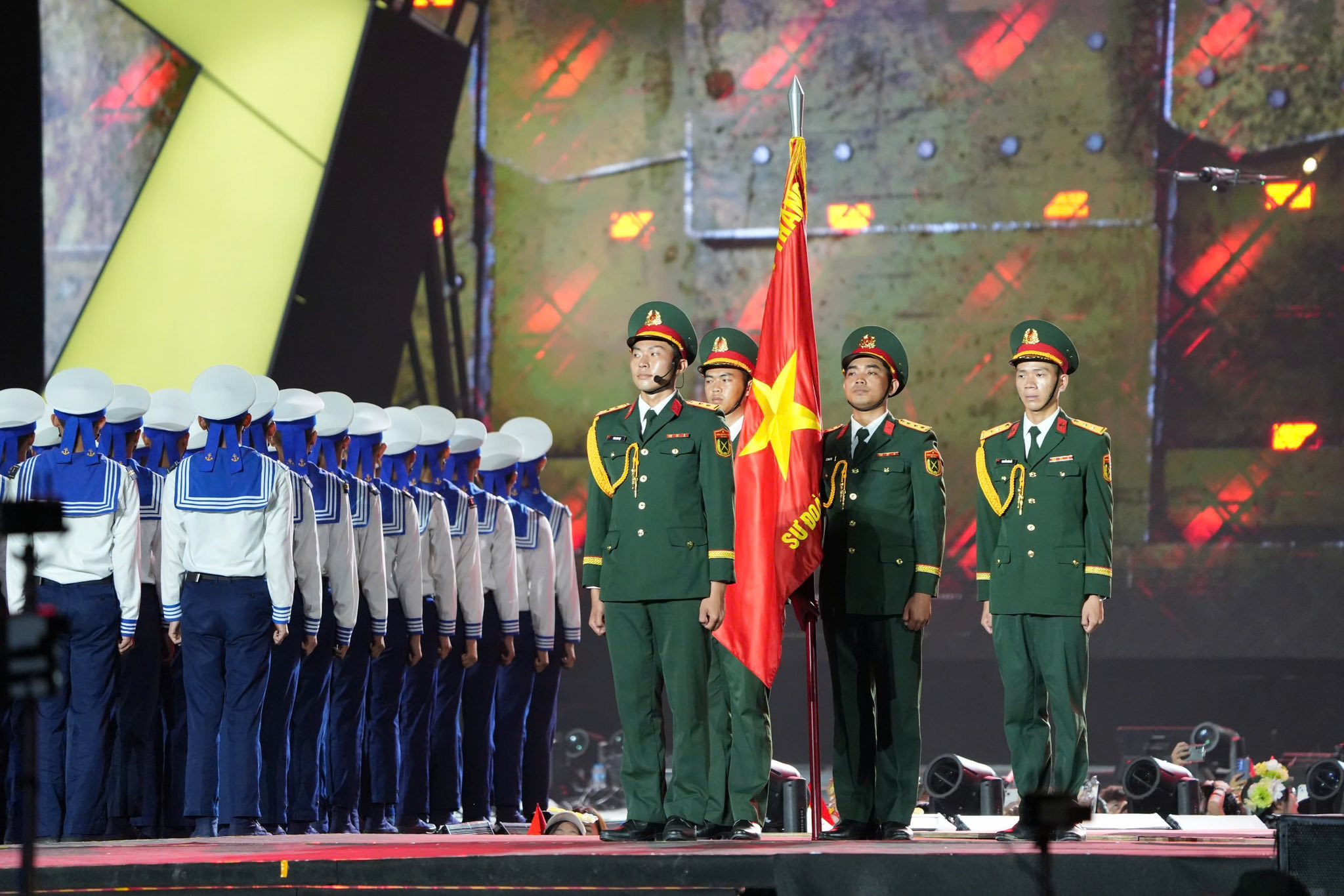 Sân khấu ngoài trời rộng hơn 1.000 m2 được thiết kế thành hình ngôi sao biểu tượng. Concert quy mô 20.000 khán giả, trang bị hệ thống âm thanh, ánh sáng và hiệu ứng hiện đại. Đặc biệt, chương trình có sự tham gia của các chiến sĩ đến từ các đơn vị Đặc công chống khủng bố, Hải quân và Lục quân – Đại lễ. Chương trình kéo dài 5 tiếng đồng hồ, dẫn dắt khán giả qua hành trình cảm xúc từ hào hùng, lắng đọng đến bùng nổ đoàn kết và niềm tự hào dân tộc. Xen giữa các phần trình diễn là những chia sẻ xúc động của những người lính từ chiến trường xưa.