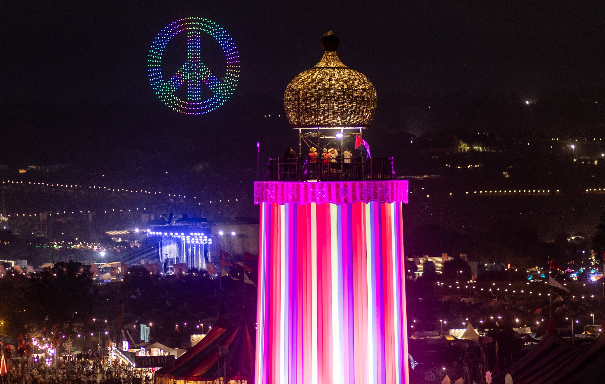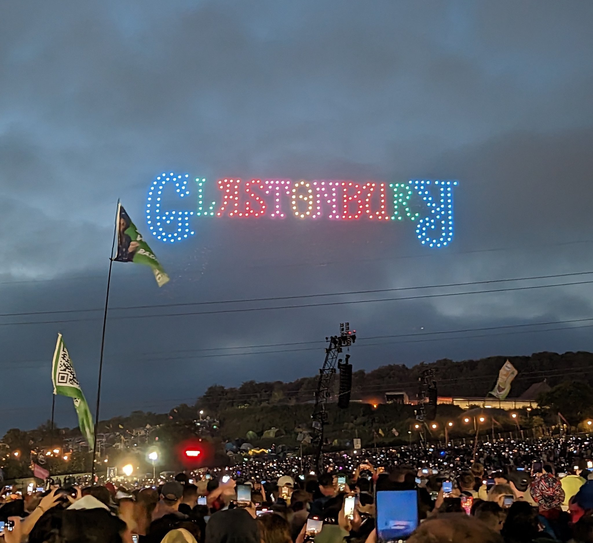 Màn trình diễn drone đã trở thành một trong những điểm nhấn mới đáng chú ý nhất của lễ hội năm nay thay cho màn pháo hoa truyền thống hàng năm diễn ra vào khoảng 11 giờ tối ngày khai mạc của Glastonbury để phục vụ những khán giả. Tại đây, khán giả sẽ tập trung xung quanh ngọn đồi huyền thoại gần sân khấu Park để chiêm ngưỡng màn trình diễn ánh sáng đặc biệt này.