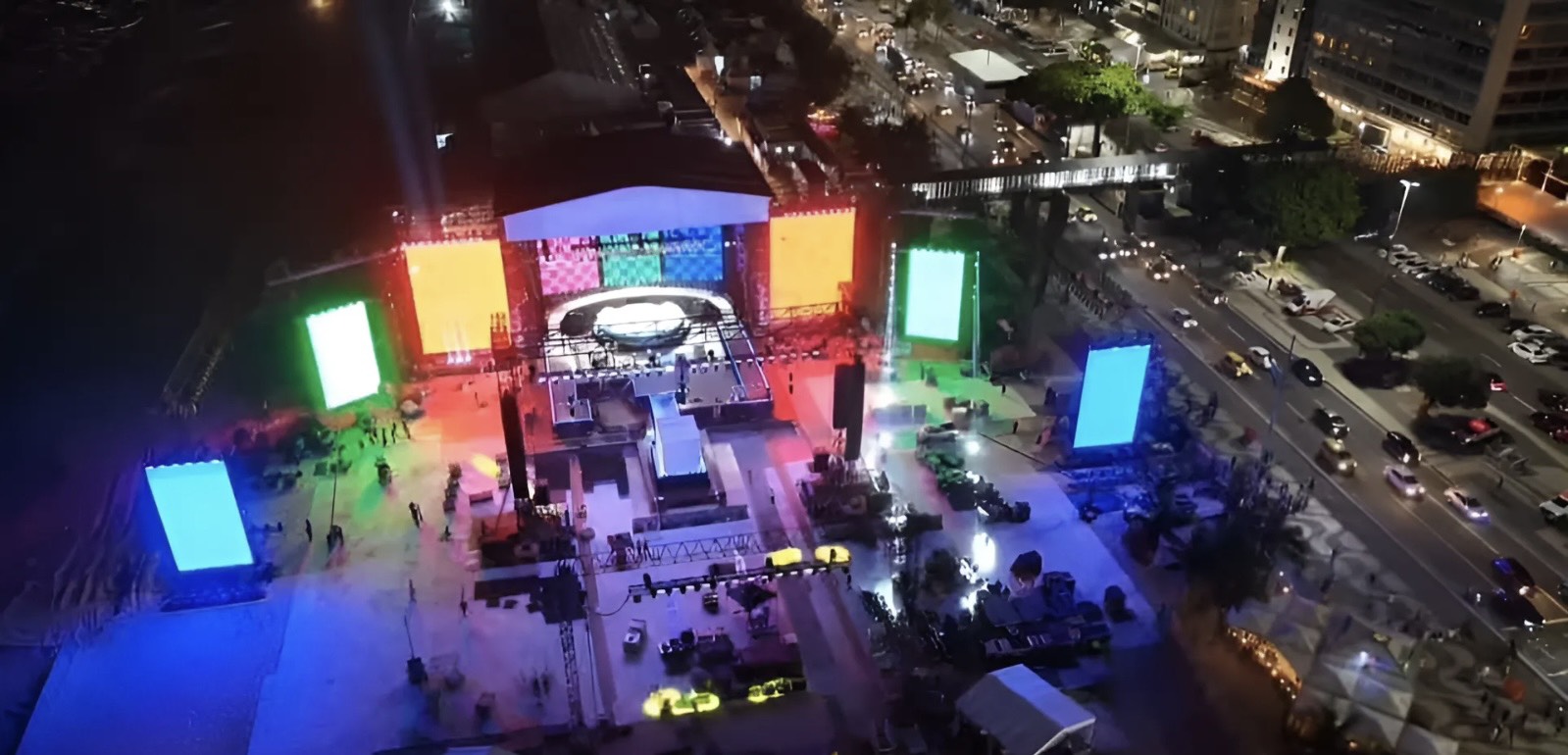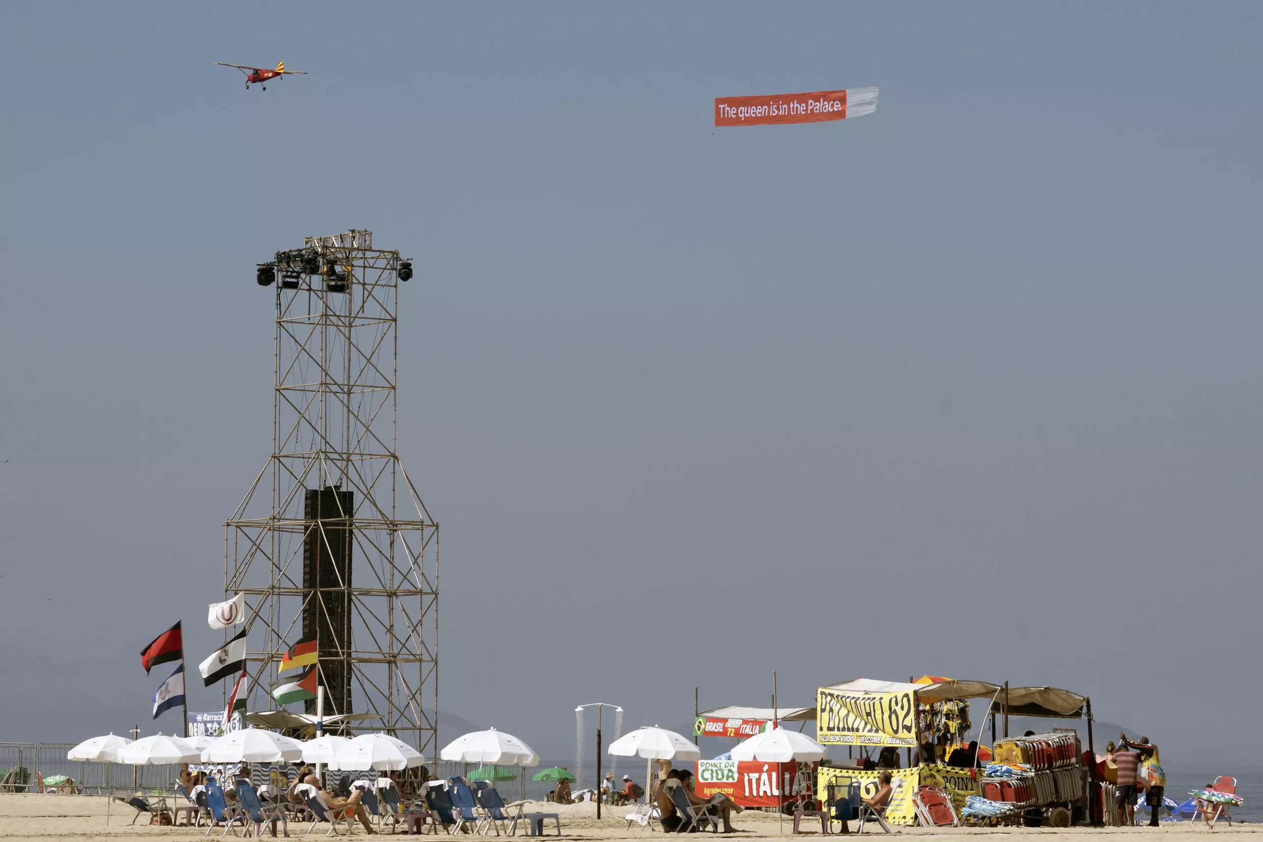 Những tấm áp phích với dòng chữ “Chào mừng nữ hoàng” được đặt ở khu vực biểu diễn của nữ ca sĩ. Sàn diễn là sân khấu khổng lồ, dựng lên trên bãi biển Copacabana.
