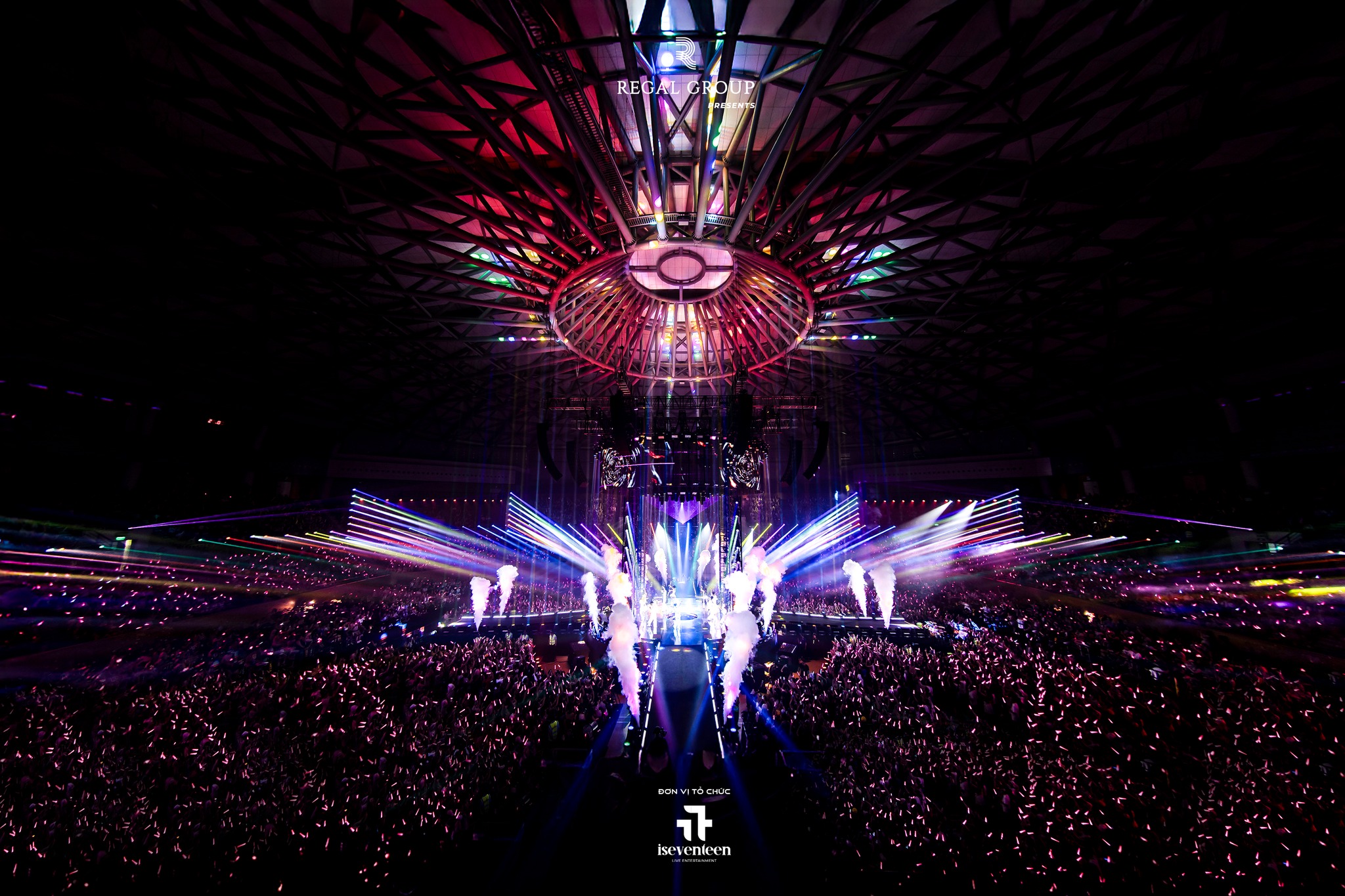 Điểm nhấn đáng chú ý của đại nhạc hội Legend Fest 2025 là sân khấu 360 độ lần đầu tiên được lắp đặt tại Việt Nam, kết hợp hệ thống sàn nâng, xoay đa chiều cùng dàn âm thanh, ánh sáng hiện đại. Thiết kế này giúp nghệ sĩ có thể di chuyển, tương tác từ nhiều hướng, đồng thời khán giả ở các vị trí khác nhau vẫn dễ dàng theo dõi.
