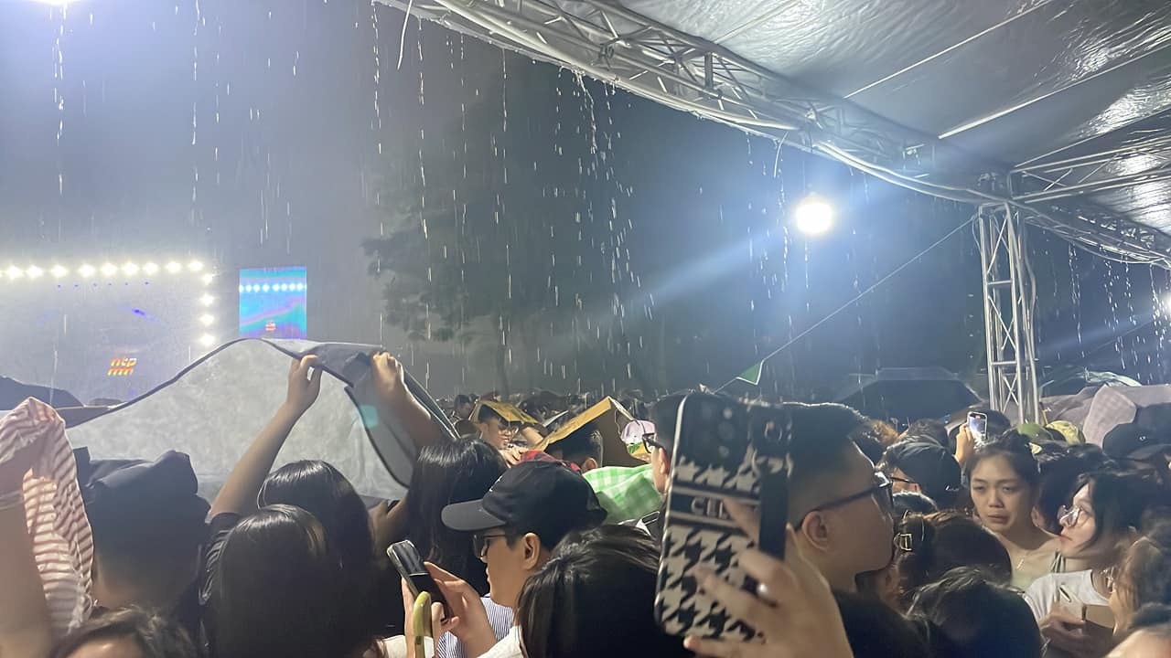 Sau khoảng 7 phút thì trời cũng tạnh, chương trình tiếp tục với phần trình diễn của Vũ nhưng cơn mưa lại bất chợt đến khiến chương trình phải tạm hoãn. Sau đó là đến Chillies, dù ban nhạc đã rất cố gắng để hoàn thành set diễn nhưng tình hình ngày càng tệ hơn nên sự kiện lại phải dừng giữa chừng.
