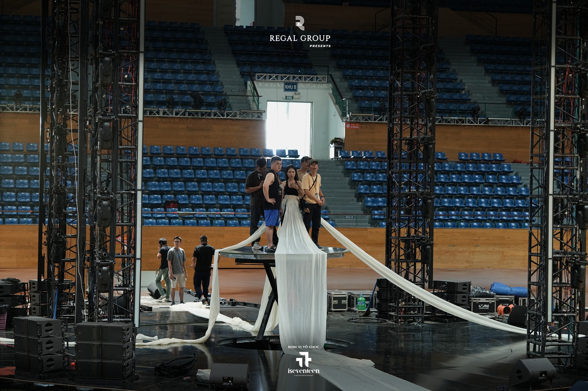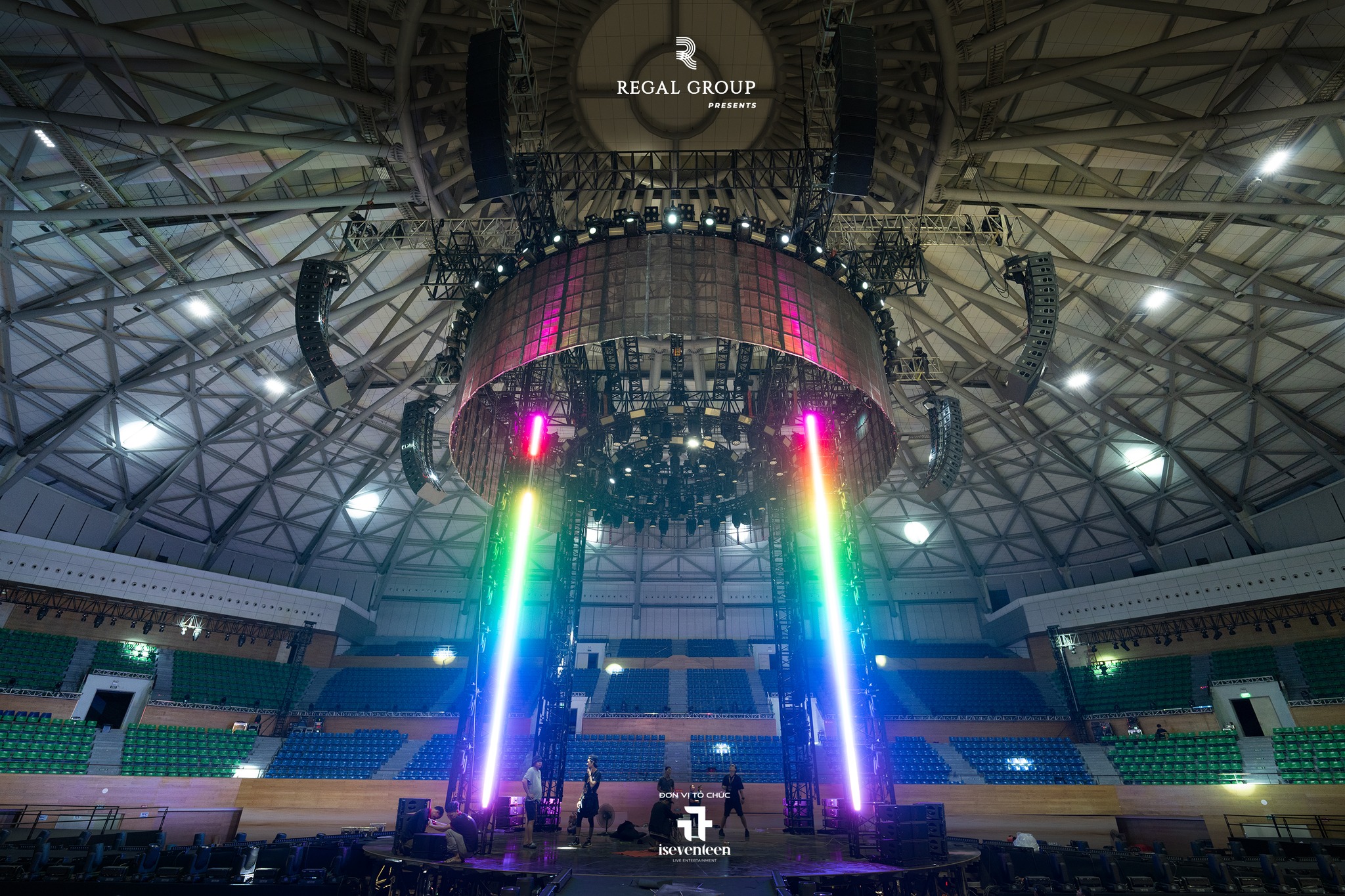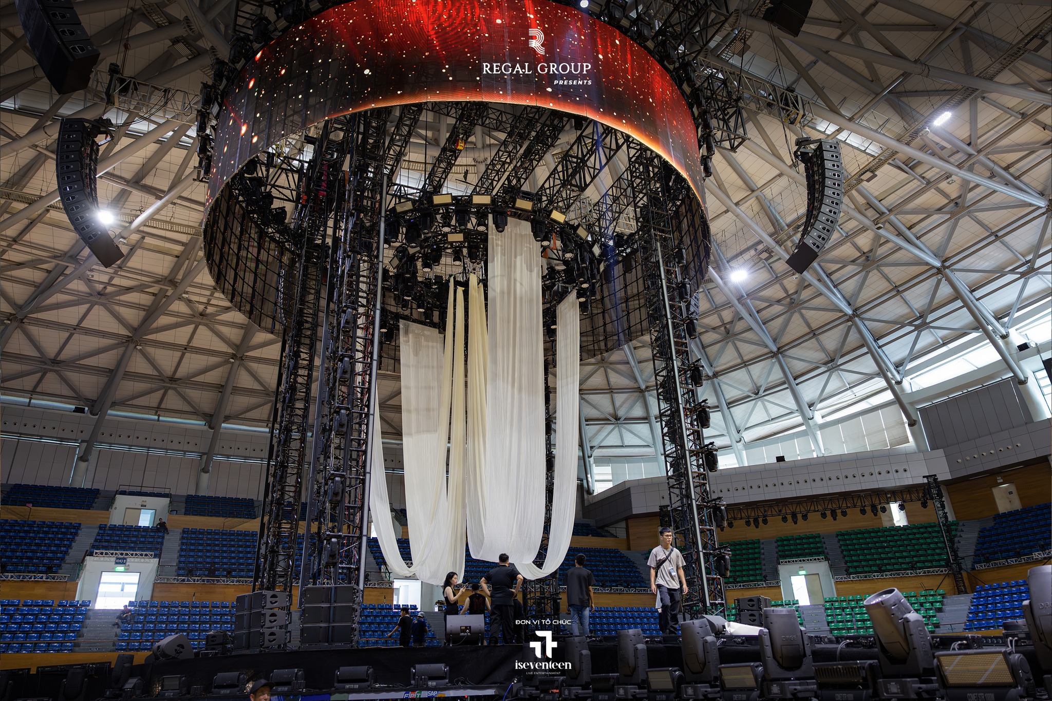 Sân khấu được ứng dụng palang nâng hạ đa tầng, kết hợp màn LED panorama khổng lồ kích thước 3m x 40m bao quanh, tạo hiệu ứng thị giác trọn vẹn từ mọi góc nhìn.