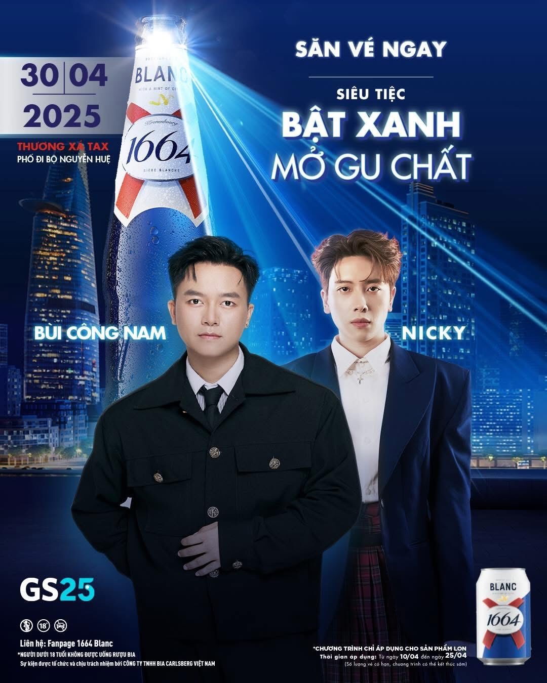Chuỗi sự kiện "Siêu Tiệc Bật Xanh - Mở Gu Chất" do thương hiệu bia cao cấp đến từ Pháp - 1664 Blanc tổ chức với sự xuất hiện của Sơn Tùng M-TP chính thức khởi động tại TP.HCM., mang đến không khí lễ hội sôi động và đậm chất cá nhân cho giới trẻ Việt.