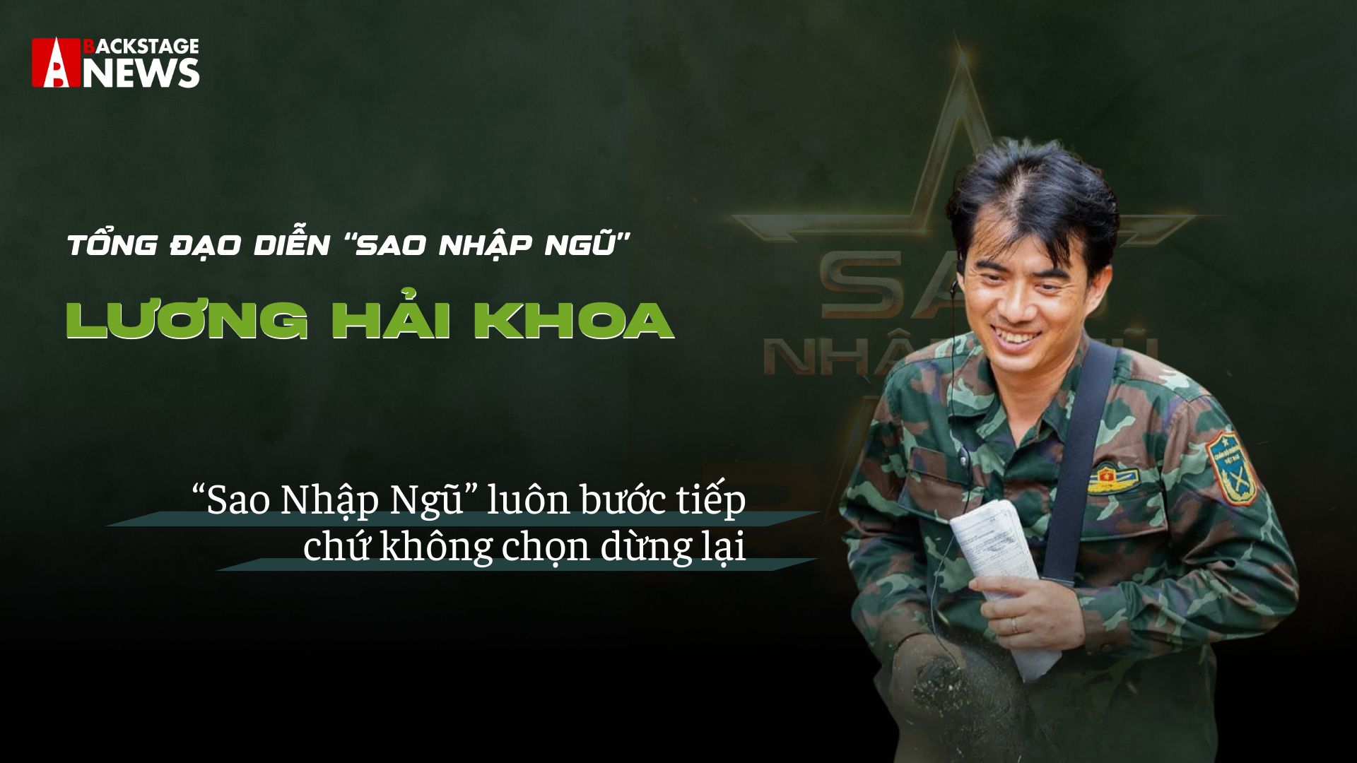 Với 15 mùa phát sóng đã qua, "Sao Nhập Ngũ" dần trở thành món ăn tinh thần của nhiều khán giả. Trong chuyên mục “Người trong ngành” lần này, hãy cùng Backstage News trò chuyện cùng Tổng Đạo diễn Lương Hải Khoa - người đã đồng hành và đóng vai trò quan trọng trong mỗi mùa "Sao Nhập Ngũ".
