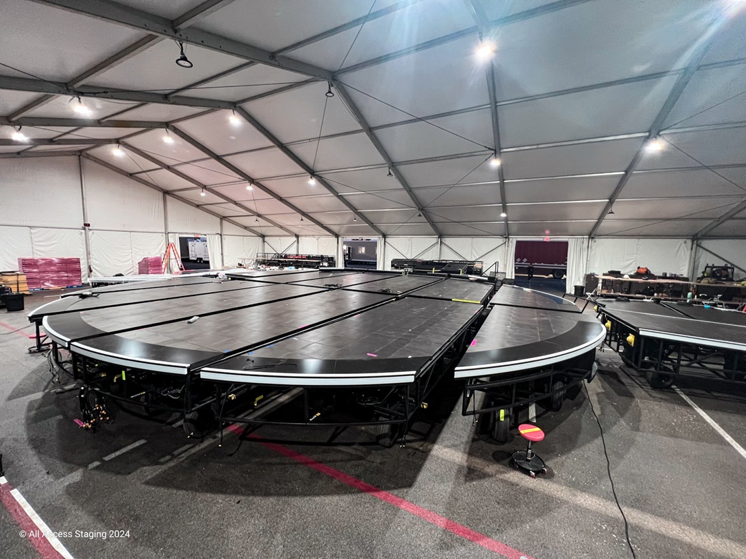 Joey Brennan, giám đốc phát triển và thiết kế kỹ thuật giải thích: “Một trong những cam kết thiết kế kỹ thuật đáng chú ý của chúng tôi là hình dạng cong độc đáo của khu vực sân khấu chính đòi hỏi độ chính xác và tích hợp phần sân khấu của khu vực ban nhạc vào các xe đẩy của sân khấu chính để đảm bảo độ cong phù hợp liền mạch” (tức phát triển khu vực ban nhạc dựa vào hình dạng đặc biệt của sân khấu chính). Cách tiếp cận này tạo điều kiện triển khai nhanh chóng – một yếu tố quan trọng khi lắp ráp toàn bộ sân khấu trong thời gian nghỉ hạn chế.
